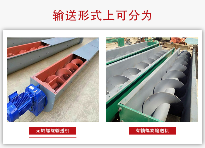大汉螺旋输送机在输送形式上分为有轴螺旋输送机和无轴螺旋输送机两种,在外型上分为管式螺旋输送机和U型螺旋输送机。